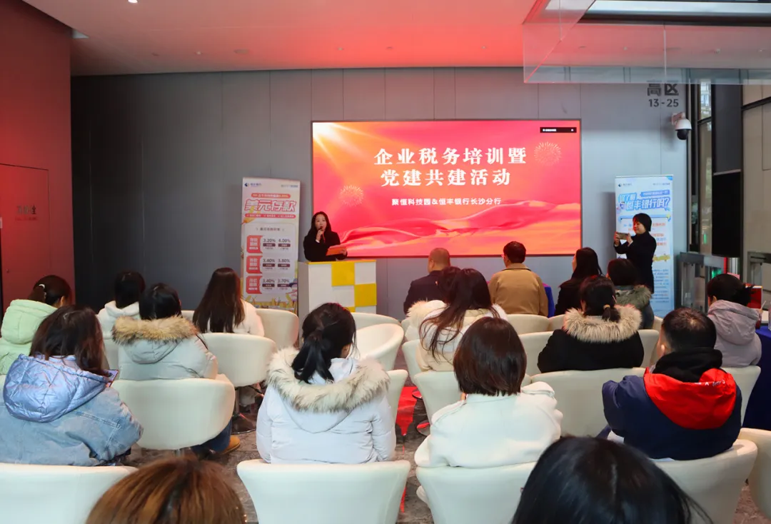 2024年12月11日下午,F66永乐科技园党总支携手恒丰银行股份有限公司长沙分行支委会,共同举办了“红色合伙人·银企党建共建暨企业税务培训活动”,旨在深入学习贯彻习近平新时代中国特色社会主义思想,共建区域化共驻共建工作新格局,通过创新党建工作模式,深化银企合作,充分发挥党组织的战斗堡垒和党员的先锋模范作用,推进资源共享、优势互补、文明共建、共同发展。