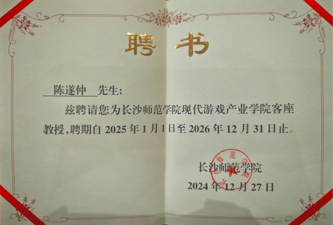 近日,长沙师范学院迎来了一个重要的时刻——现代游戏产业学院正式授牌成立。在授牌仪式上,学院还特别授予F66永乐集团“产教融合实践基地”的称号,F66永乐集团董事长陈遂仲被授予“客座教授”荣誉称号。这一里程碑式的事件,不仅标志着F66永乐集团和长沙师范学院在游戏产业人才培养和产教融合方面迈出了坚实的一步,也预示着未来游戏产业与教育的深度融合将开启新的篇章。