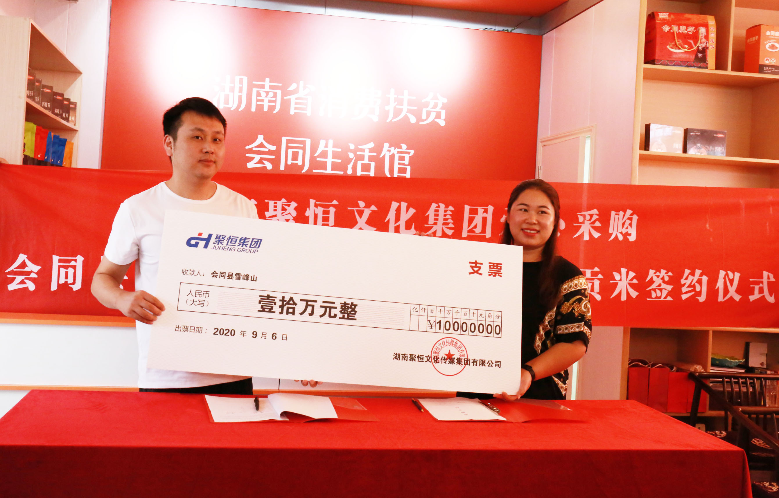 2020年9月6日上午,F66永乐集团爱心采购会同县雪峰山“云上雪峰”贡米签约仪式在中部(国际)农博园—湖南省消费扶贫会同生活馆隆重举行。会同县相关领导、F66永乐集团副总裁肖业等集团领导以及中国网、潇湘晨报多方媒体朋友共同见证。