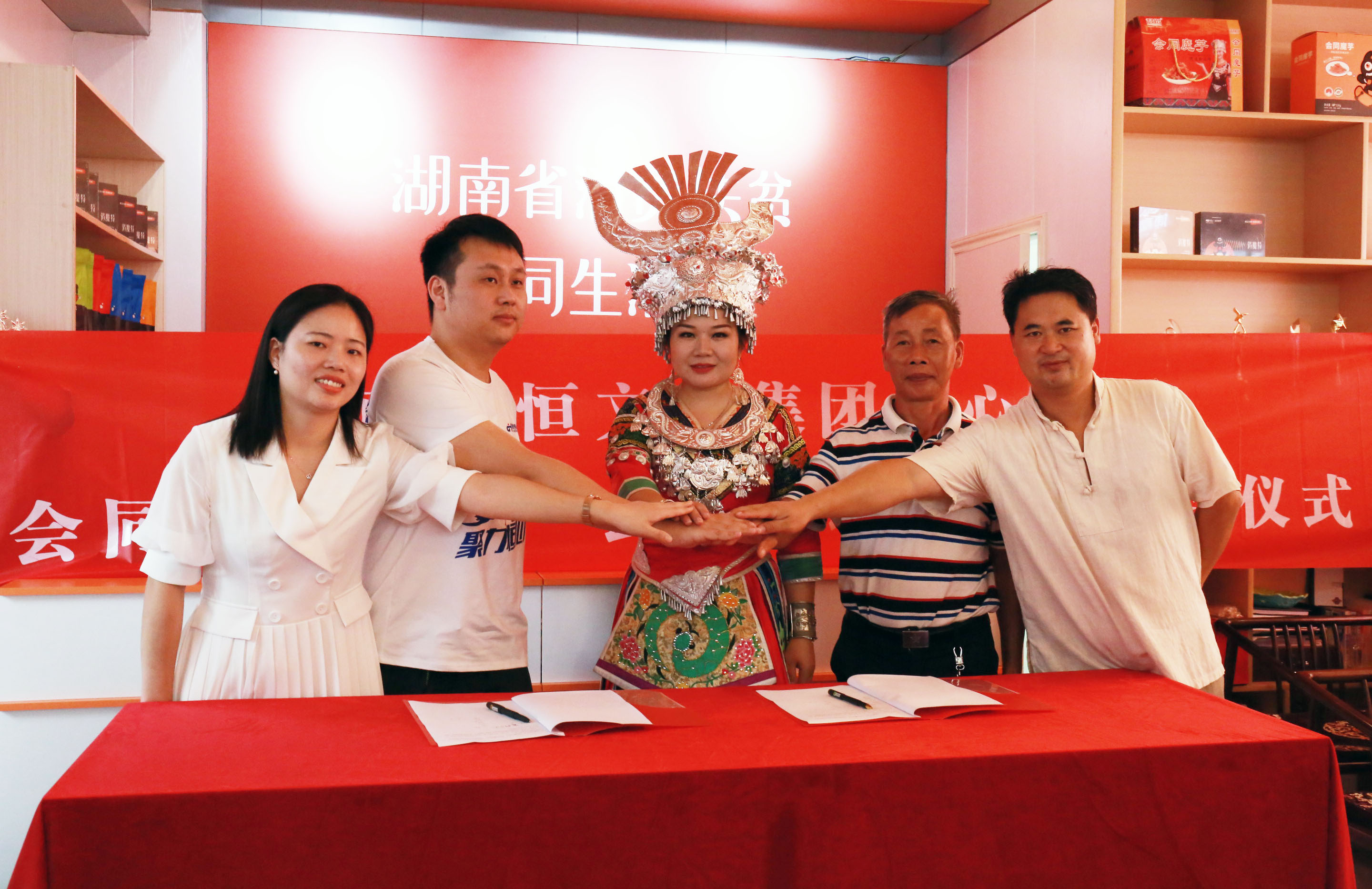 随后,双方领导签约爱心采购方案并合影留念。